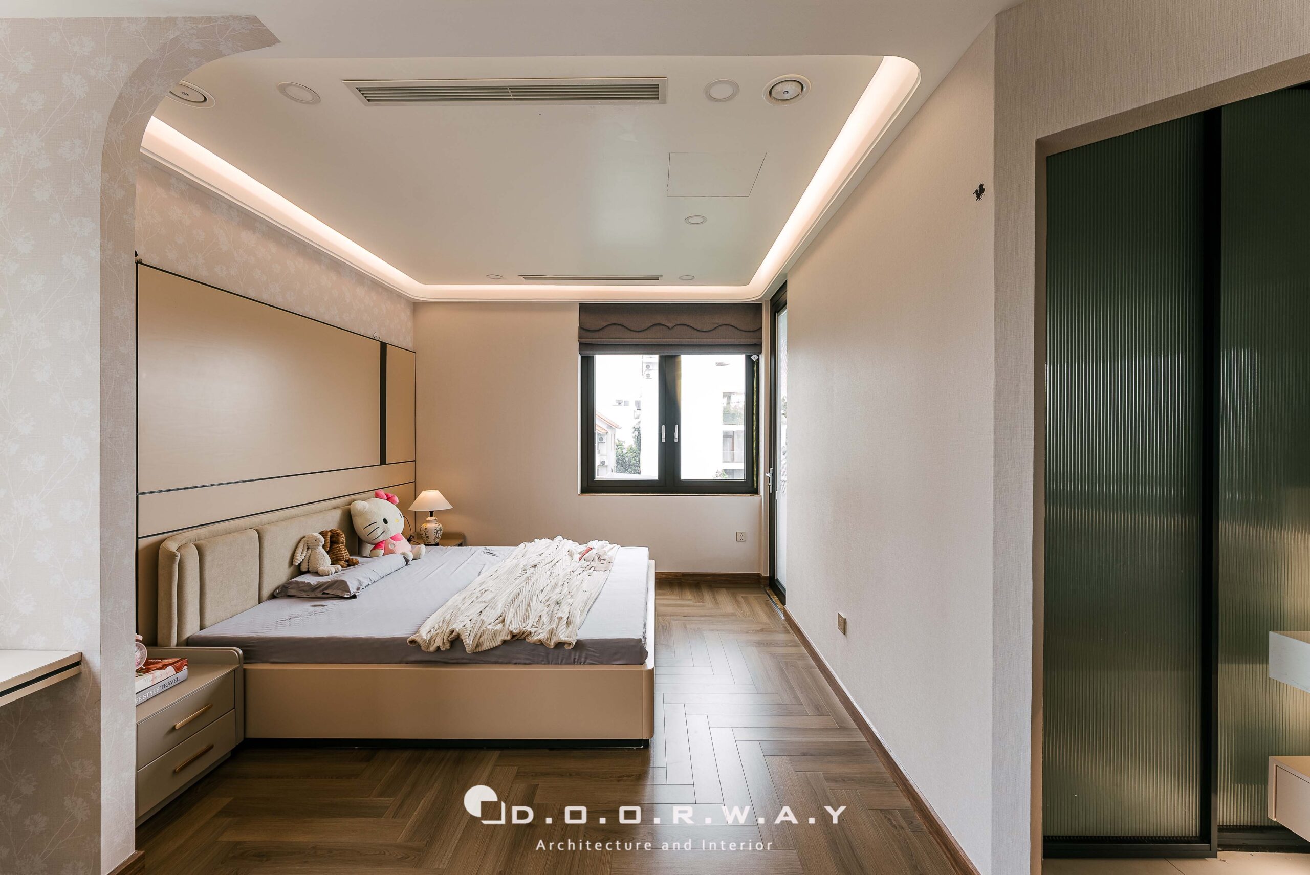 Không gian còn trở nên đặc biệt hơn nhờ chi tiết cửa dấu khuôn khéo léo mở ra nhà vệ sinh master. Thiết kế này mang đến sự bất ngờ thú vị, vừa giữ được sự gọn gàng trong tổng thể, vừa đảm bảo tính tiện nghi và riêng tư tuyệt đối. Đây chính là chi tiết thể hiện sự tinh tế trong tư duy thiết kế – tất cả đều được tính toán để phục vụ trải nghiệm sống thoải mái nhất cho gia chủ.