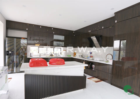 Với lớp phủ Veneer, căn phòng bếp trông thật tiện nghi, hiện đại