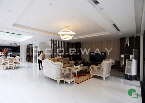 Phòng khách biệt thự luôn chiếm một khoảng diện tích vừa đủ cho sinh hoạt gia đình, không gian thanh lịch sang trọng đi kèm với những đồ vật trang trí tinh tế, gian phòng nhỏ nhưng đầy đủ các chức năng. Không gian này tạo cảm giác ấm áp, gần gũi, khiến cho mọi người sống tại căn nhà này thấy thoải mái, thân thuộc hơn.