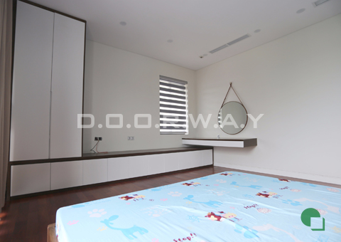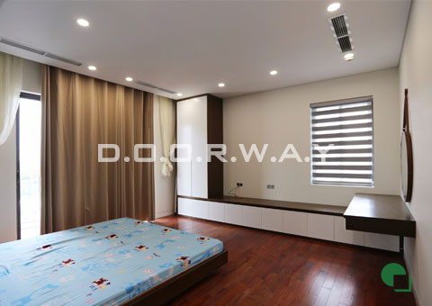 Điểm nổi bật của cả 4 phòng ngủ trong căn nhà này là đồ nội thất đều làm từ gỗ với màu trắng của tường tạo nên sự kết hợp hài hòa nhưng cũng không kém phần sang trọng và lịch lãm.