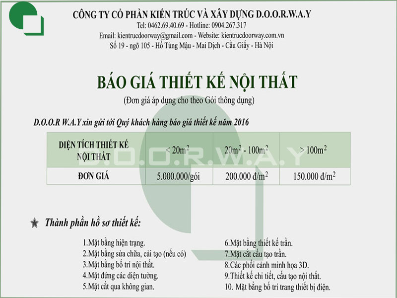 Tham khảo: báo giá thiết kế nội thất văn phòng tại D.O.O.R.W.A.Y