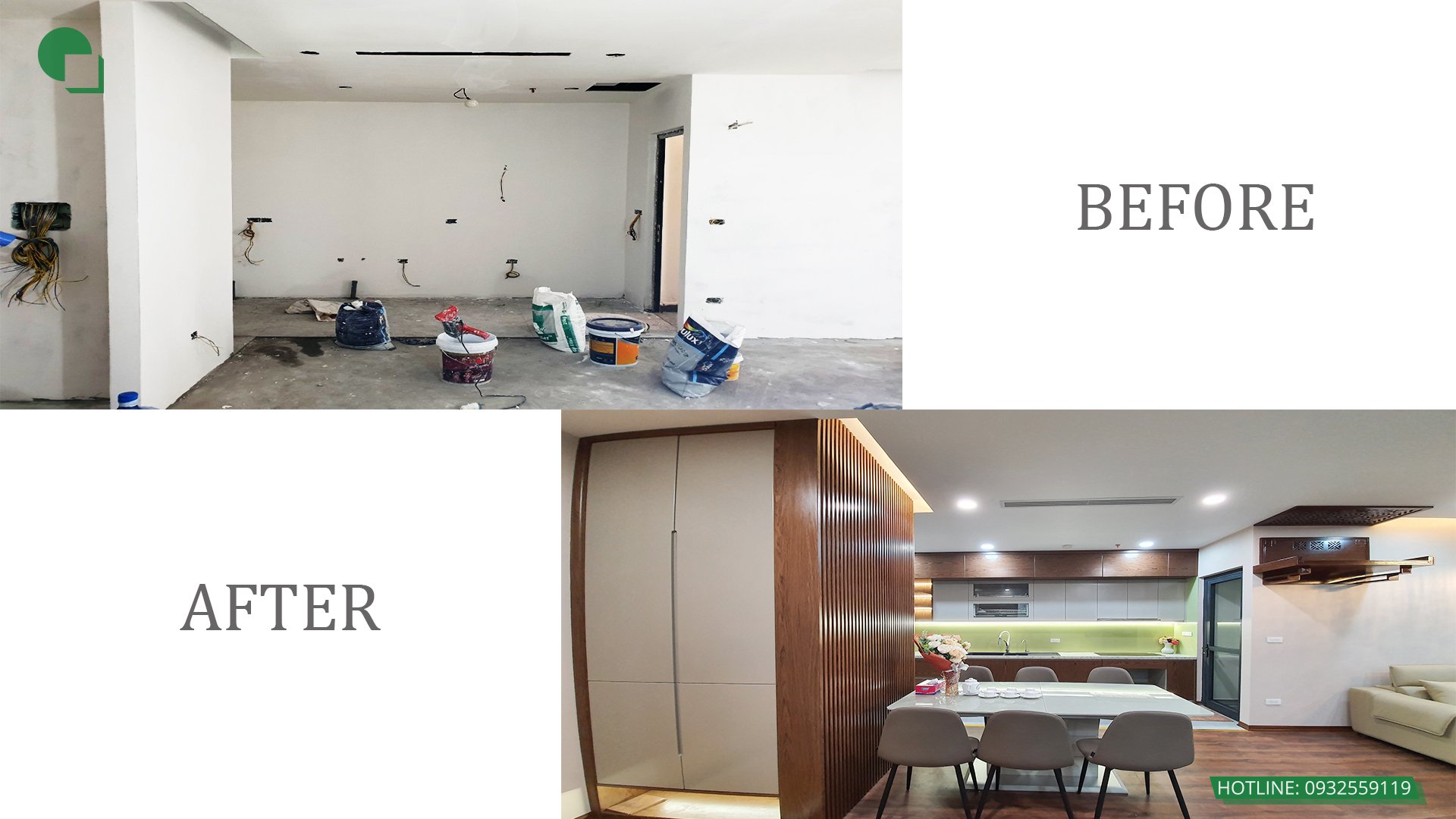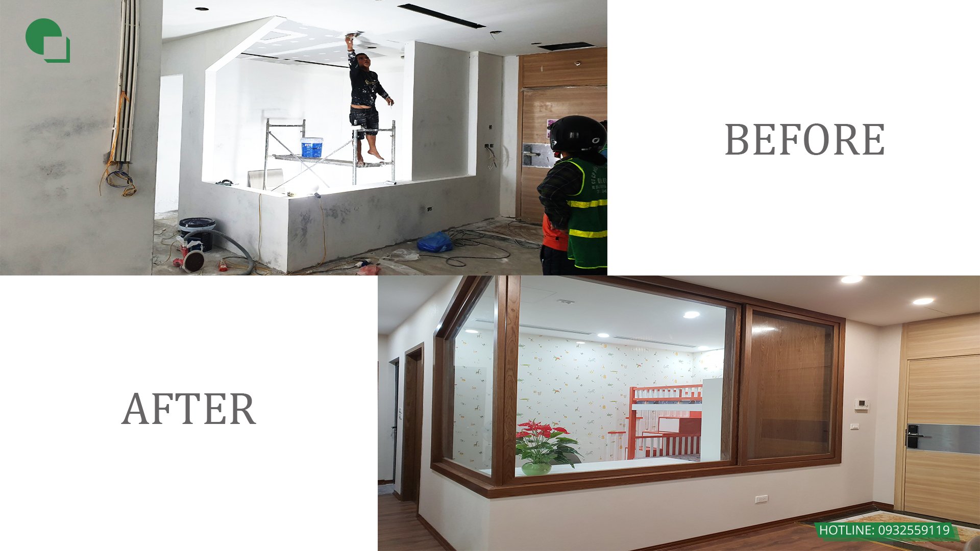 Trước khi thi công và sau khi hoàn thiện nội thất đã mang đến một không gian mới, ấn tượng, hài hòa và đúng ý chủ nhà là cả một quá trình chăm chuốt và tỉ mỉ của đội ngũ kiến trúc sư và thợ thi công của D.O.O.R.W.A.Y. Dưới đây là một số hình ảnh cập nhật so sánh để thấy được sự tỉ mỉ và tay nghề của đội thợ nhà D.O.O.R.W.A.Y trong nhiều năm qua: