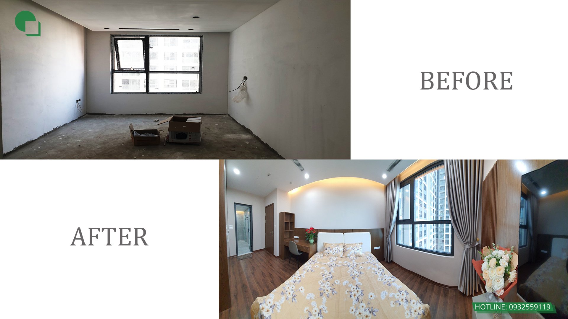 2. Hình ảnh so sánh hiện trạng và thực tế hoàn thiện nội thất chung cư The Zei